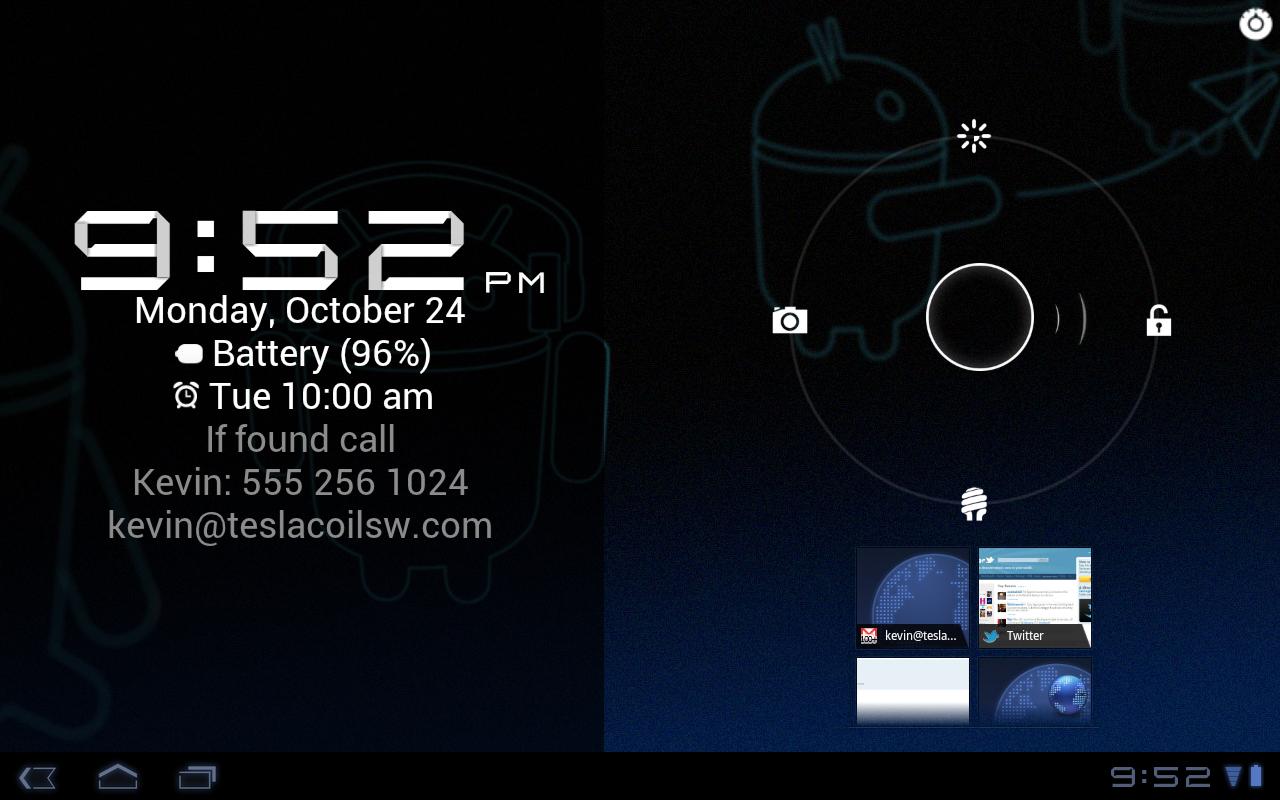 WidgetLocker is a lock screen replacement that puts you in control of the look, feel and layout of your lock screen.